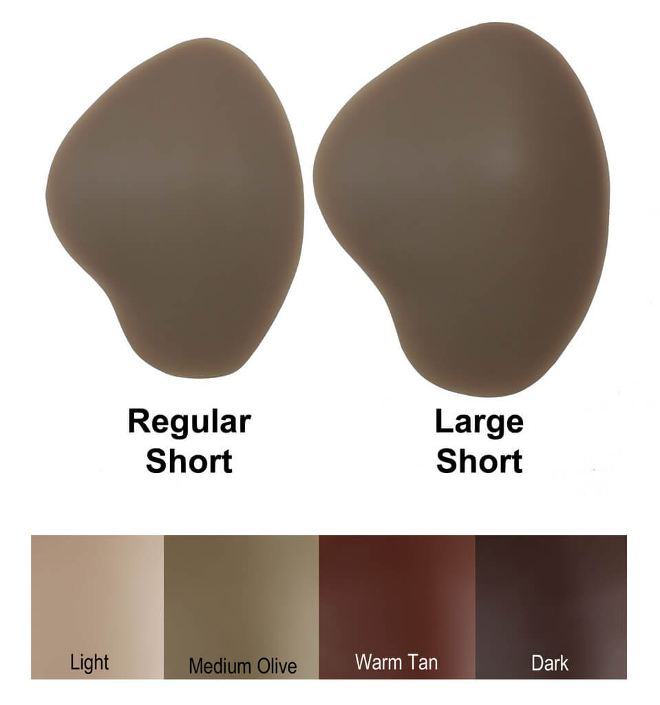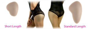 DressTech silicone hip pads are available in two different lengths for a professional fit. The short length hip pads work with nearly any outfit but they have a clear advantage with shorts, short skits and outfits that end well-above the knee. For pants, full-length skirts and longer outfits, the Standard Length hip pads offer additional thigh shaping and a gradual blend.